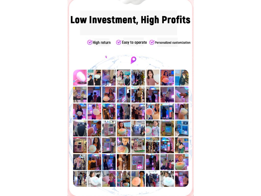 Tento automat na výrobu 40 druhů cukrové vaty je moderní plně automatický stroj určený pro komerční provoz bez obsluhy. Nabízí širokou škálu příchutí, atraktivní vizuální provedení a silný reklamní efekt, který přitahuje pozornost dětí i dospělých.