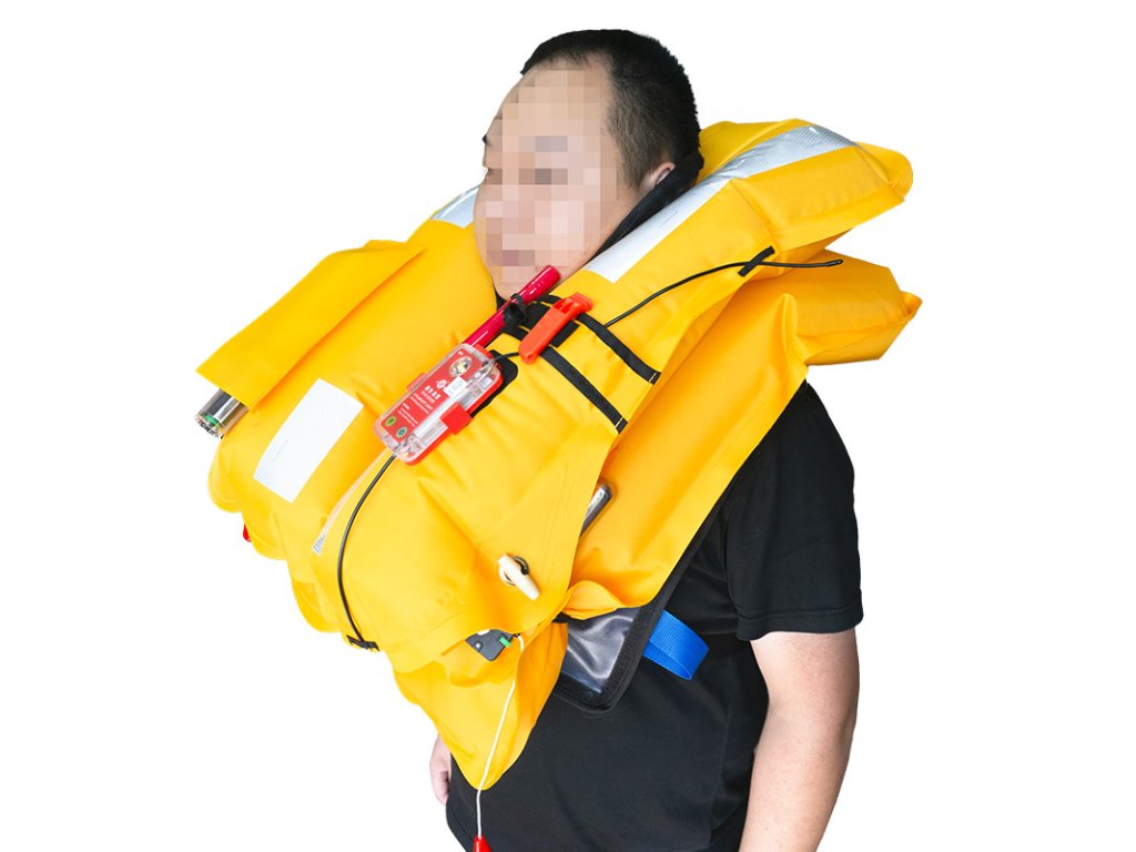 Nafukovací námořní záchranná vesta 150N s automatickým i manuálním nafukováním. EC certifikace, profesionální ochrana na vodě.