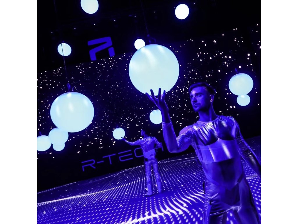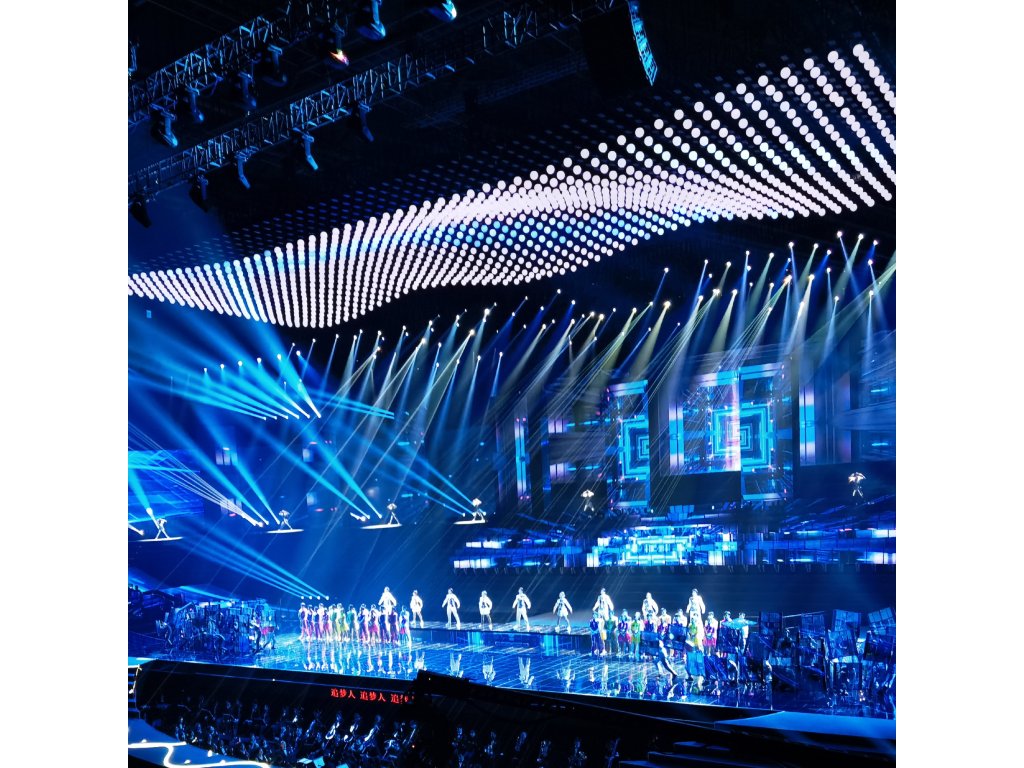 Kinetické osvětlení zahrnuje světelné prvky, které se pohybují v prostoru – například zavěšené koule, panely nebo trubice, které mohou stoupat, klesat, rotovat nebo se jinak transformovat. Tyto pohyby jsou synchronizovány s hudbou, zvukem nebo předem naprogramovanými scénáři, což umožňuje vytvářet živé a interaktivní vizuální efekty.