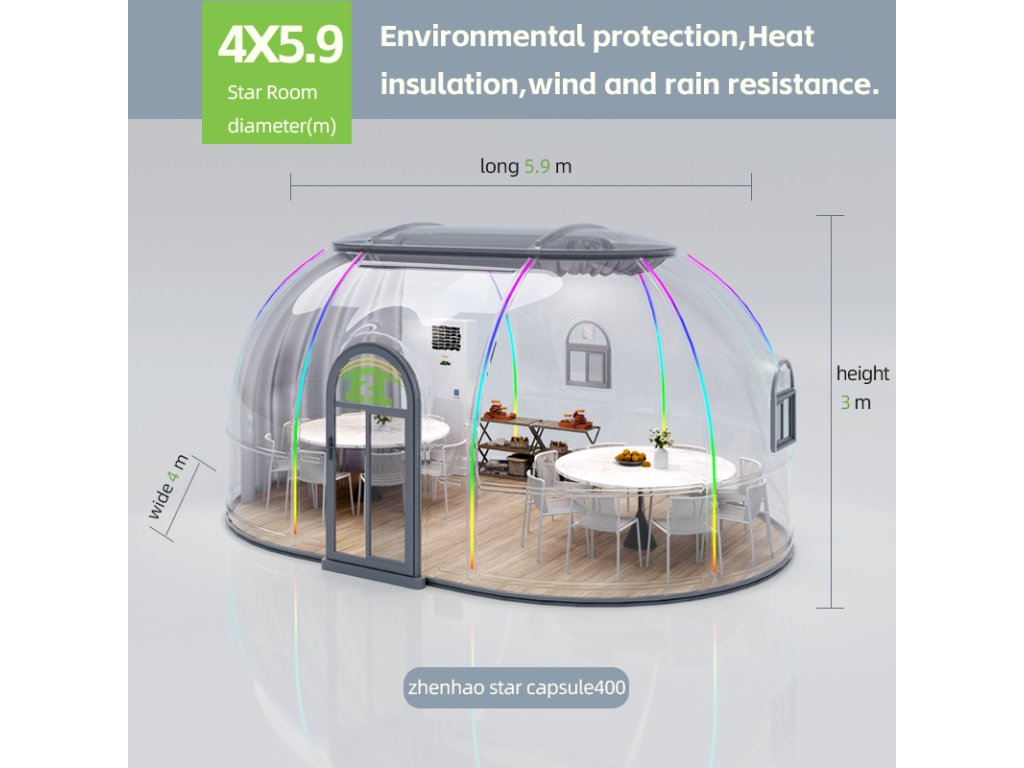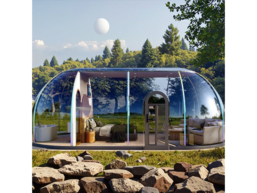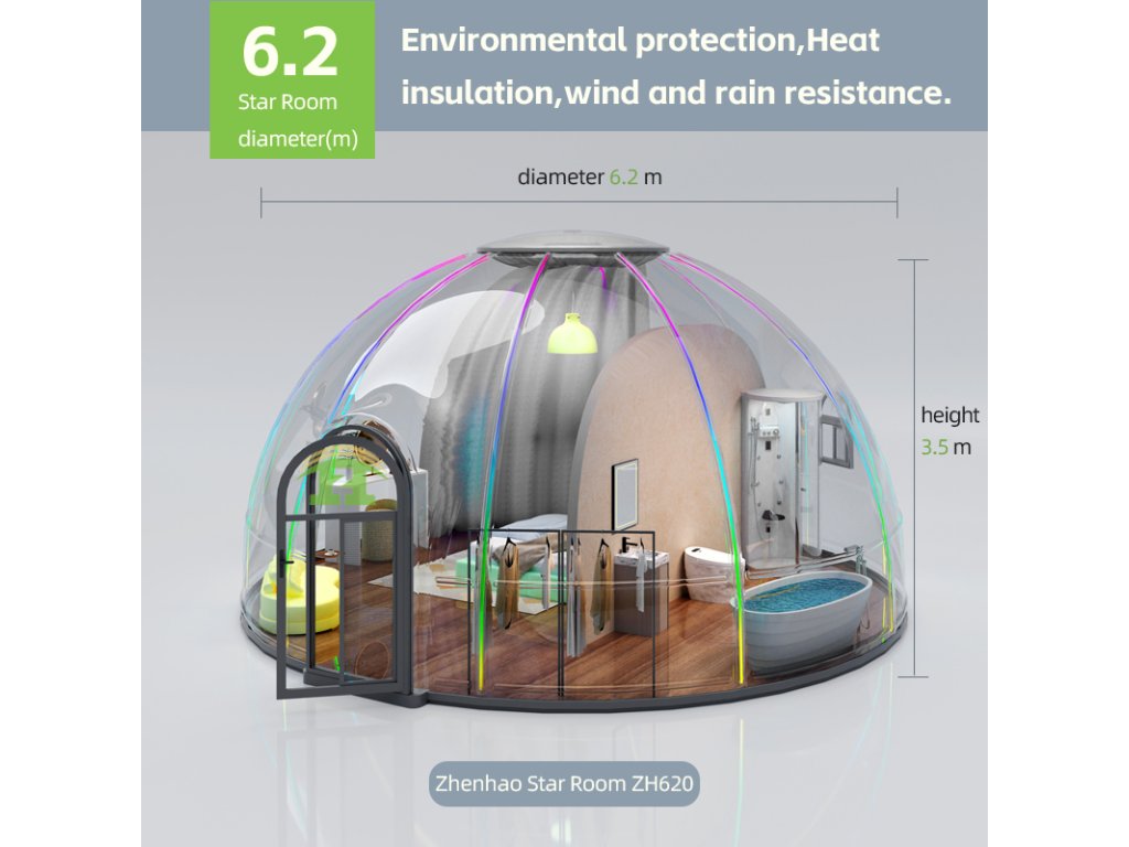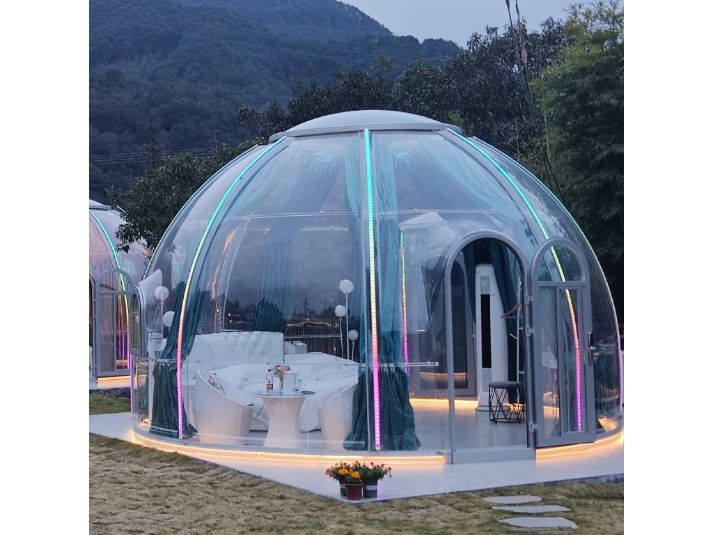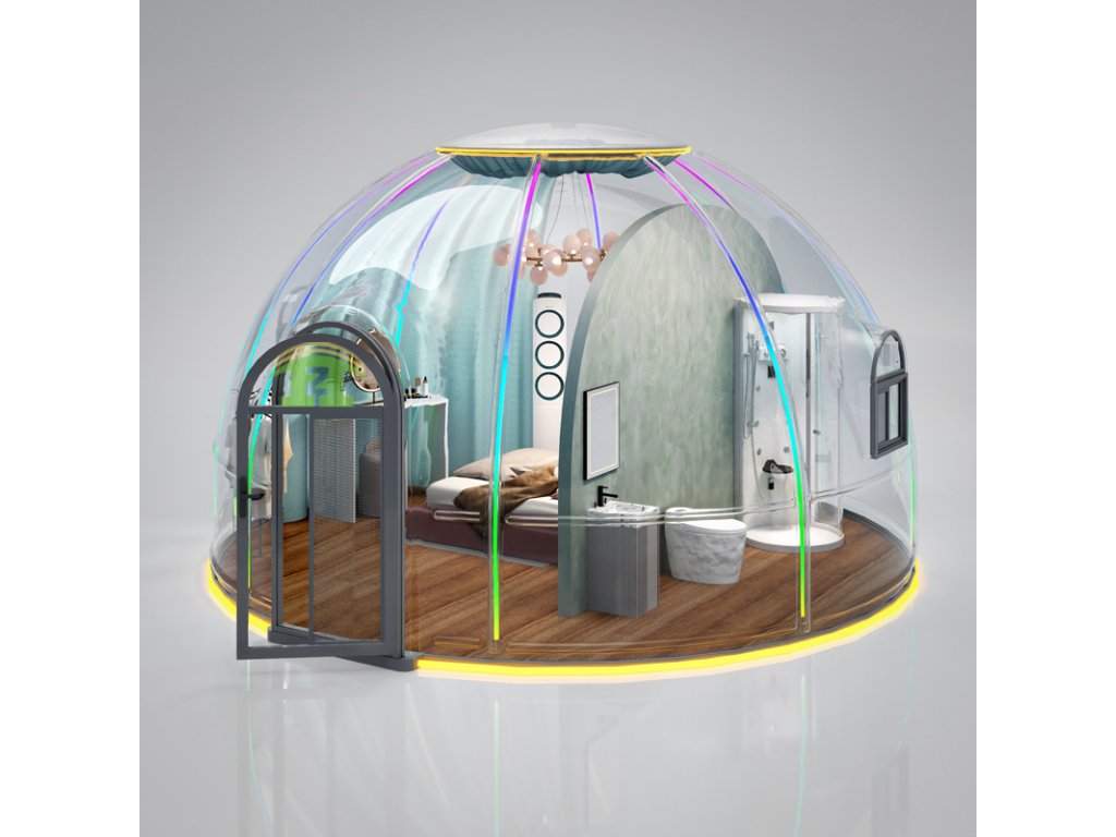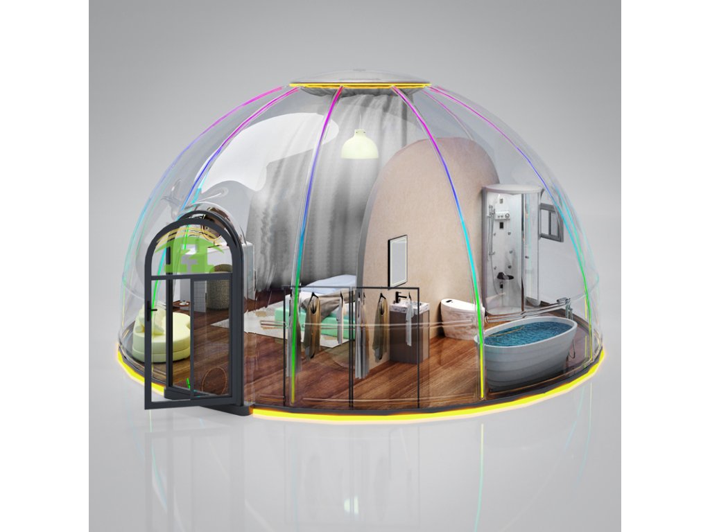 Moderní luxusní hotelový stan – dřevěná voštinová skleněná kopule
