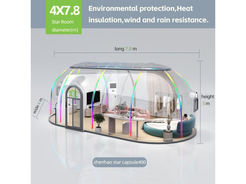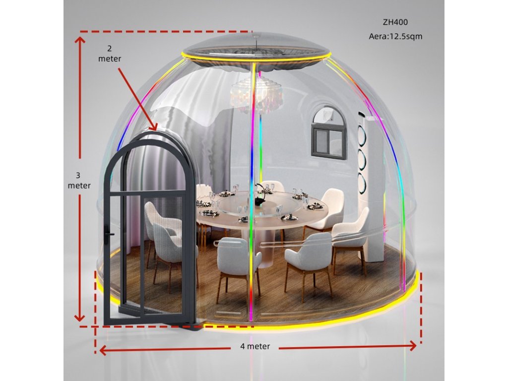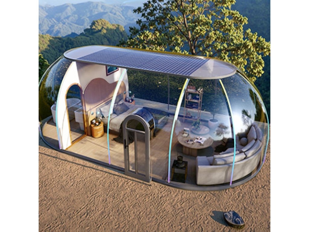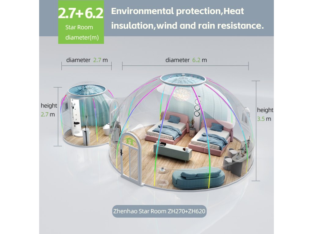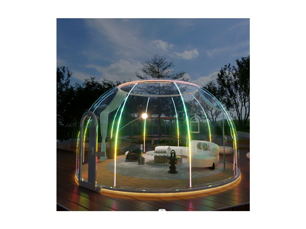 Moderní luxusní hotelový stan – dřevěná voštinová skleněná kopule