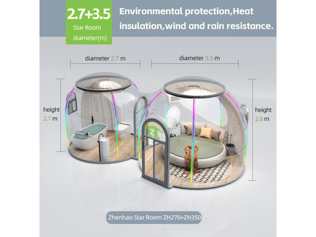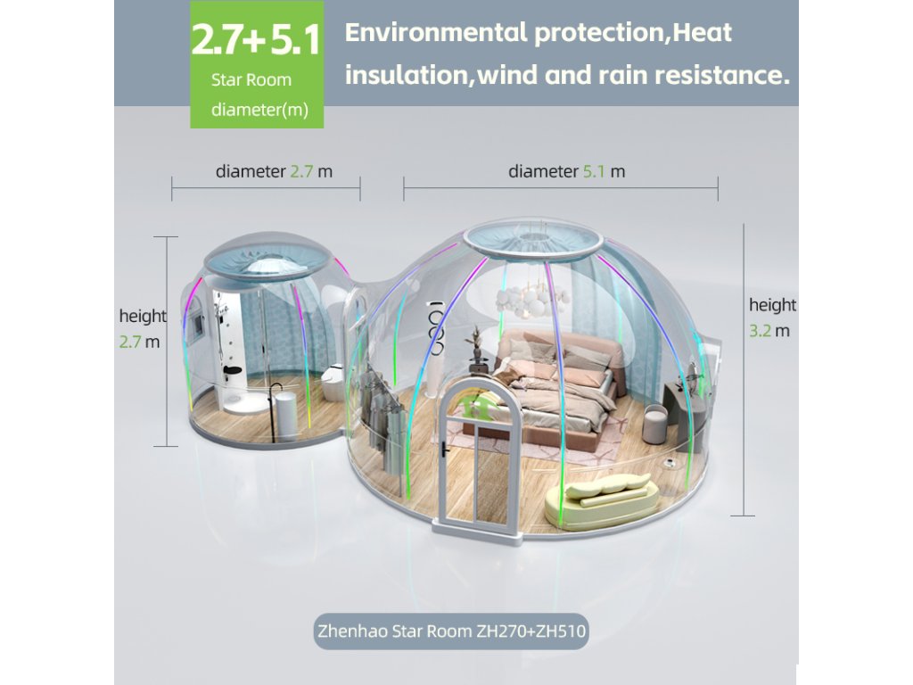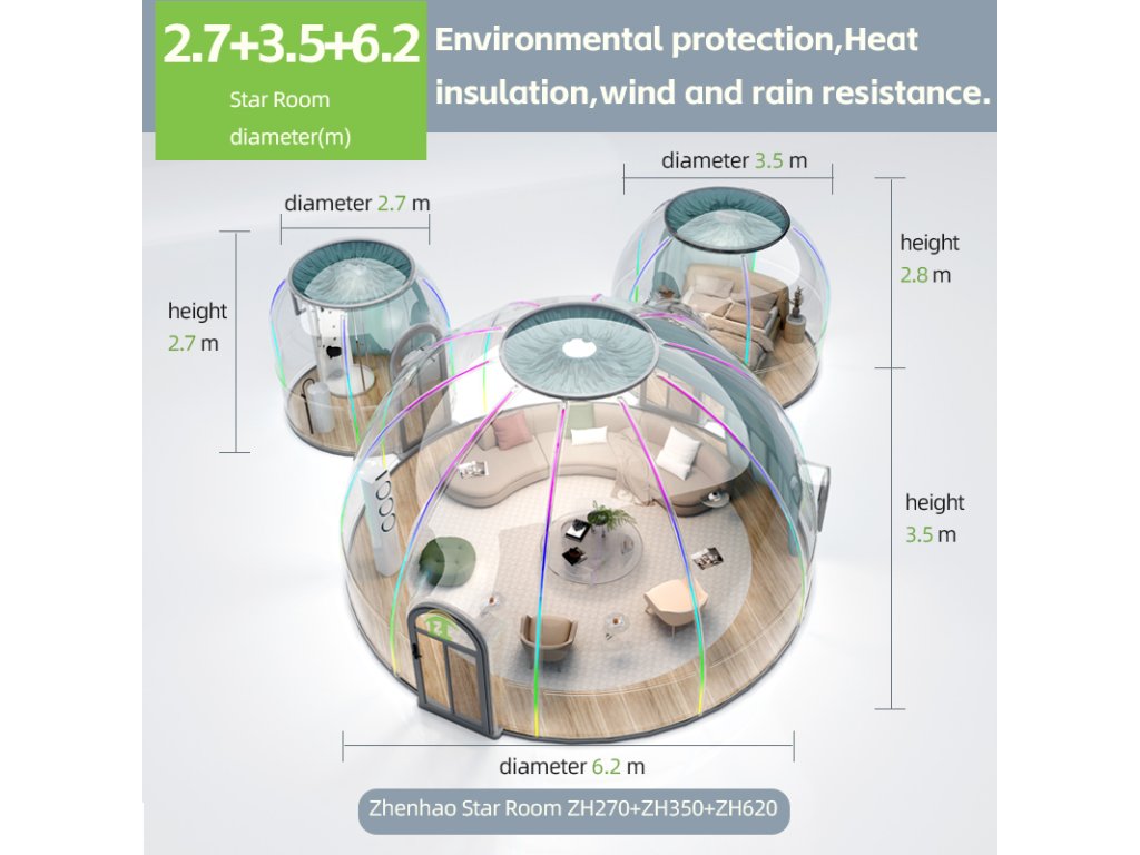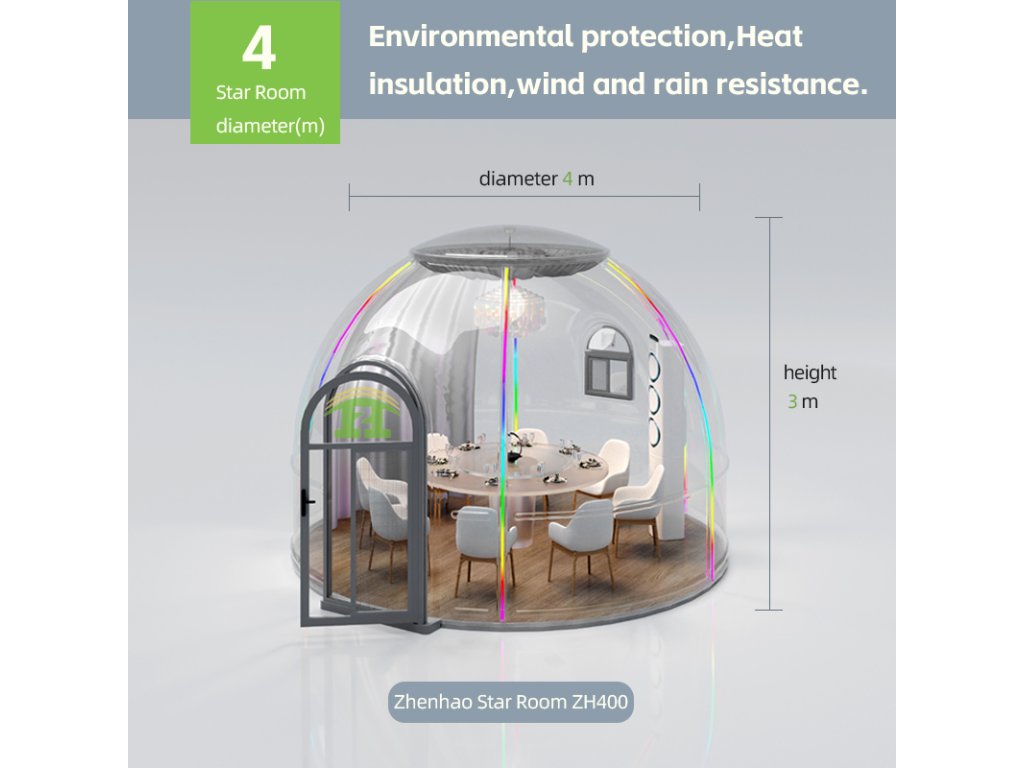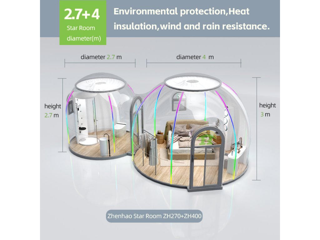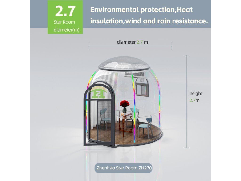 Moderní luxusní hotelový stan – dřevěná voštinová skleněná kopule